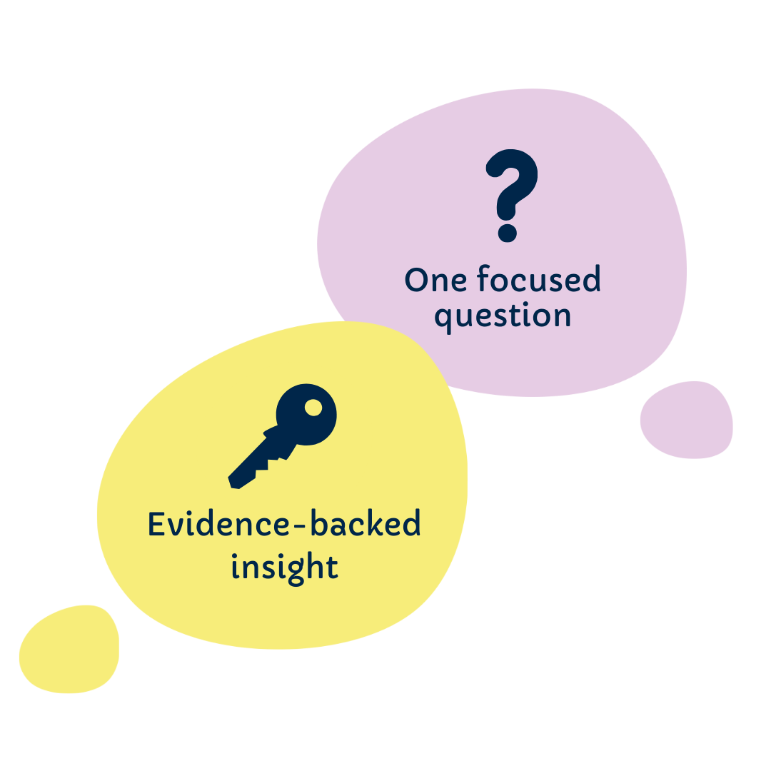We define one powerful question, gather and analyse data, layer in your expertise – and turn it into a practical, publishable insights report you can actually use.
